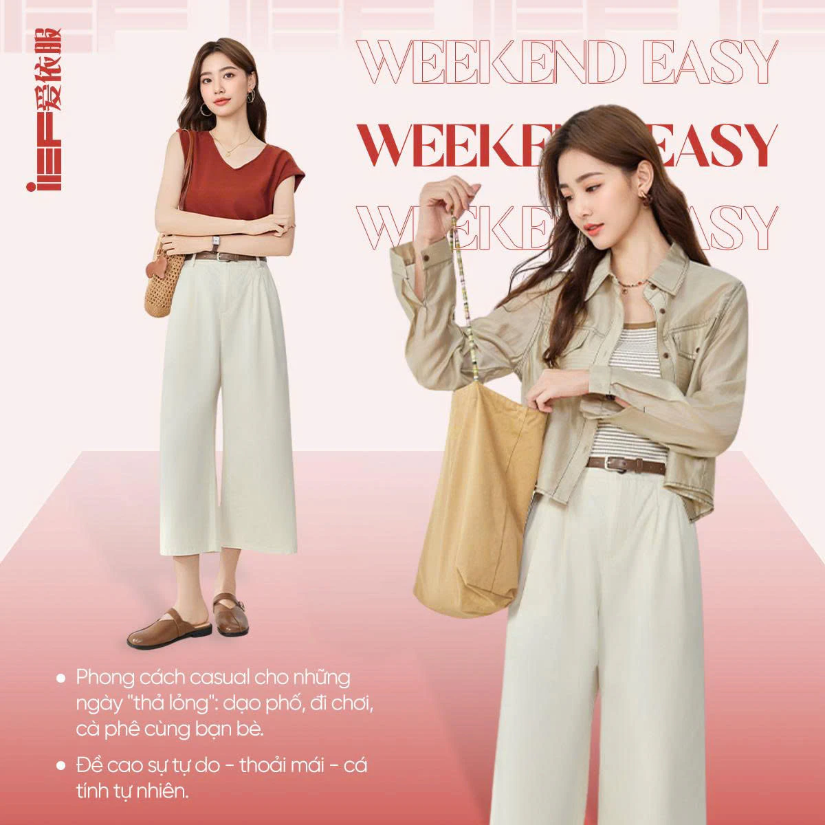 ✨ Weekend Easy – Những ngày cuối tuần thư thả, nàng chọn phong cách thoải mái nhưng không kém phần tinh tế để tự do là chính mình.